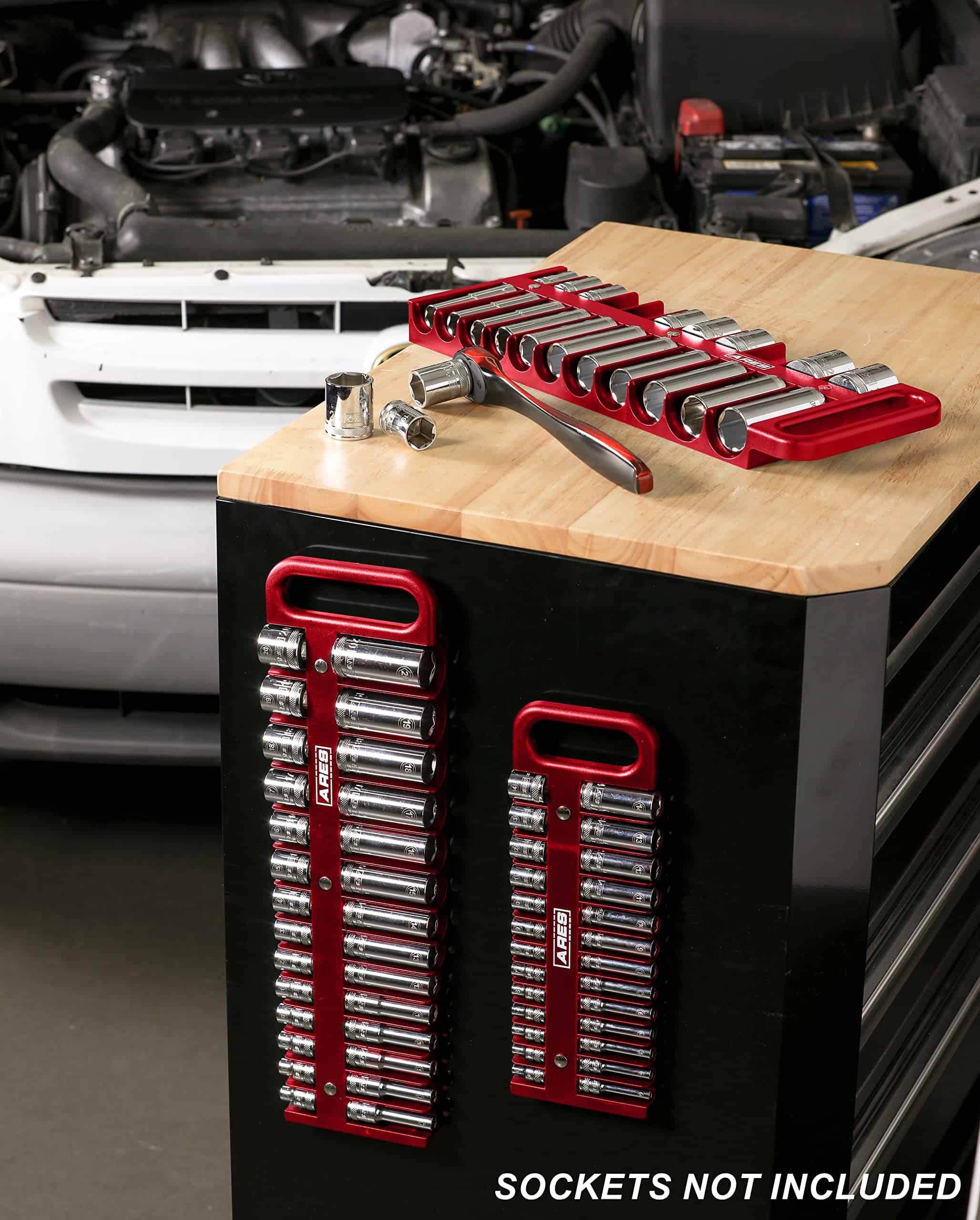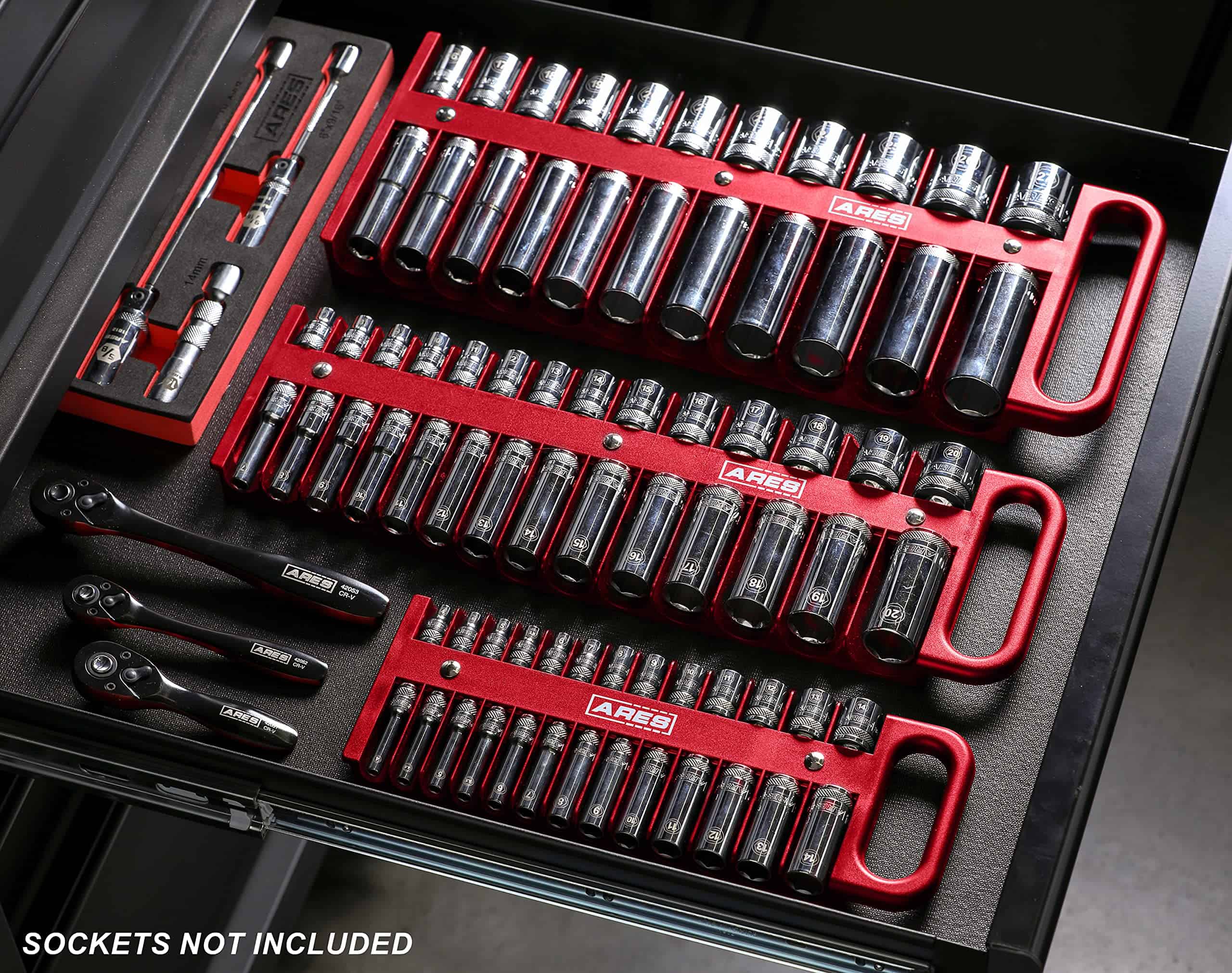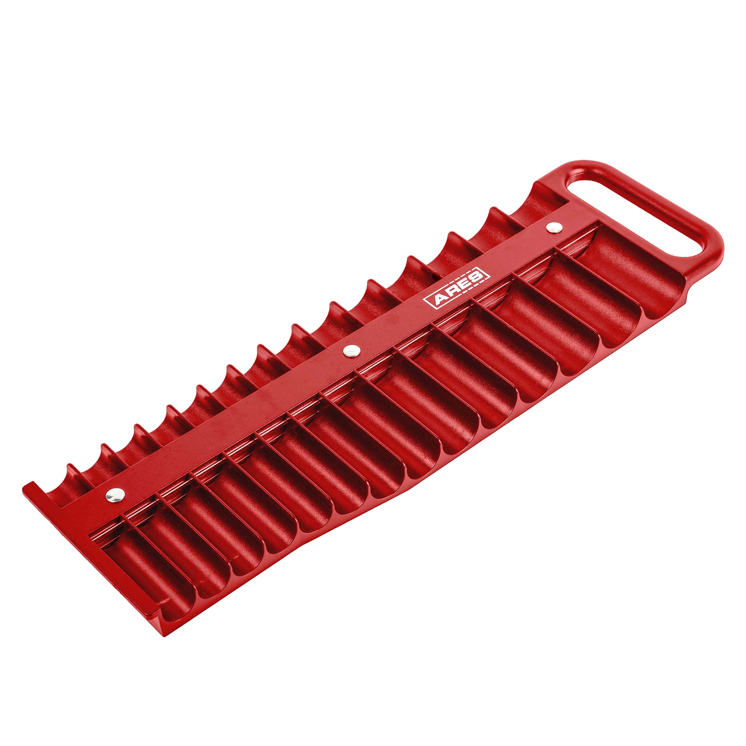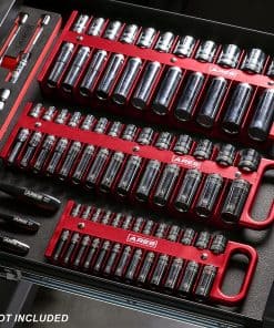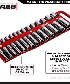 El Organizador de Sockets de 3/8 pulgadas de ARES tiene espacio para 14 sockets estándar y 14 profundos, lo que te permite almacenar y organizar todos tus favoritos, tanto en medida estándar como en métrica, en un solo lugar conveniente. Este organizador de sockets cuenta con imanes potentes para mantener tus sockets firmemente en su lugar, por lo que nunca tendrás que buscarlos en tu caja de herramientas. Incluso hay espacio para tamaños de sockets de hasta 1-3/16 pulgadas o 30 mm. Gracias al mango, puedes llevar tus sockets rápidamente y fácilmente a cualquier lugar. Incluye: 1 organizador de sockets negro de 1/2 pulgada de unidad que sostiene hasta 22 sockets (11 espacios designados para sockets superficiales y 11 para sockets profundos), sostiene sockets estándar de hasta 1-3/16 pulgadas y sockets métricos de hasta 30mm, imanes potentes mantienen los sockets en su lugar, fabricado en plástico resistente de alto impacto, mango conveniente que te permite agarrar fácilmente el organizador de sockets.