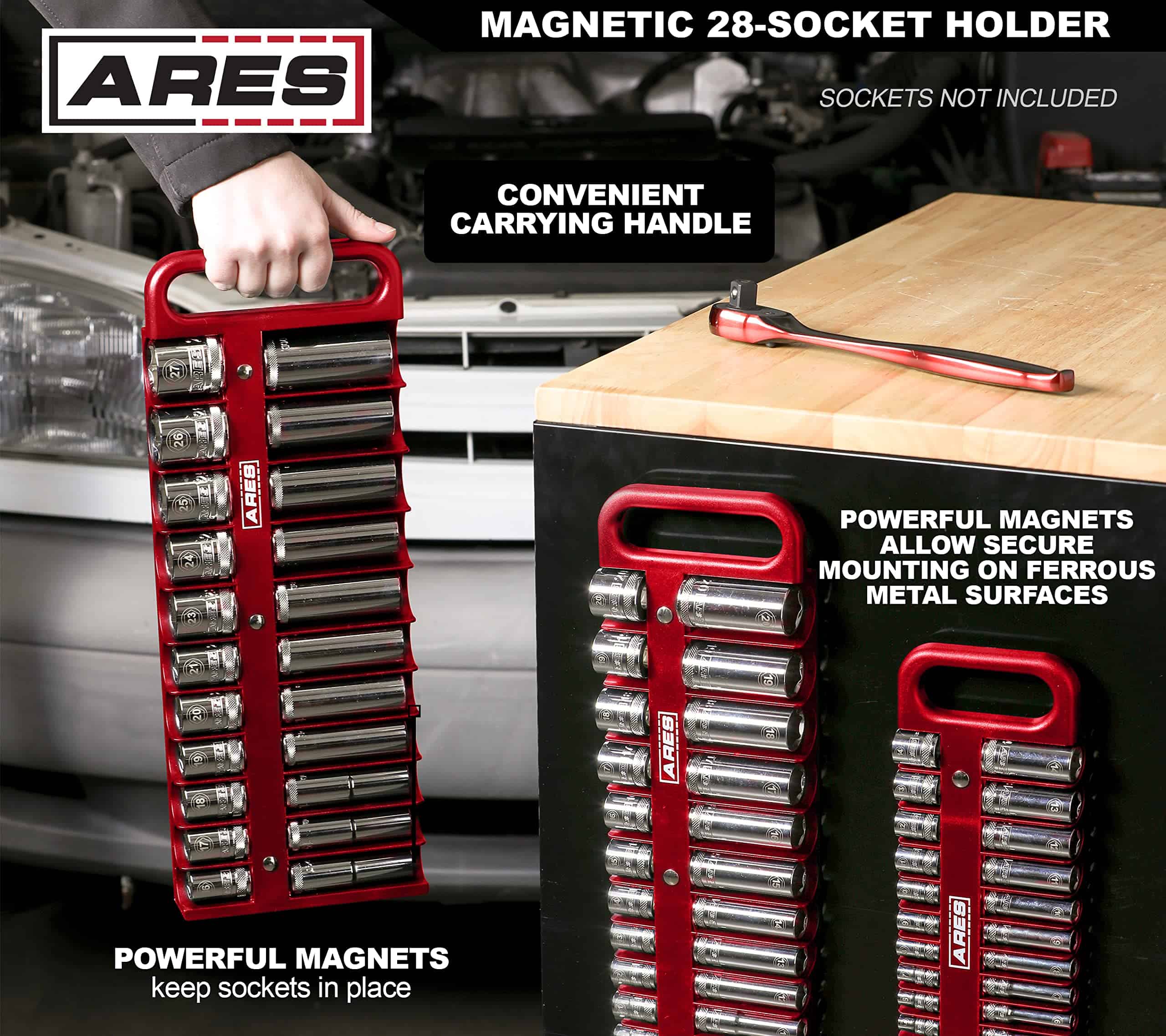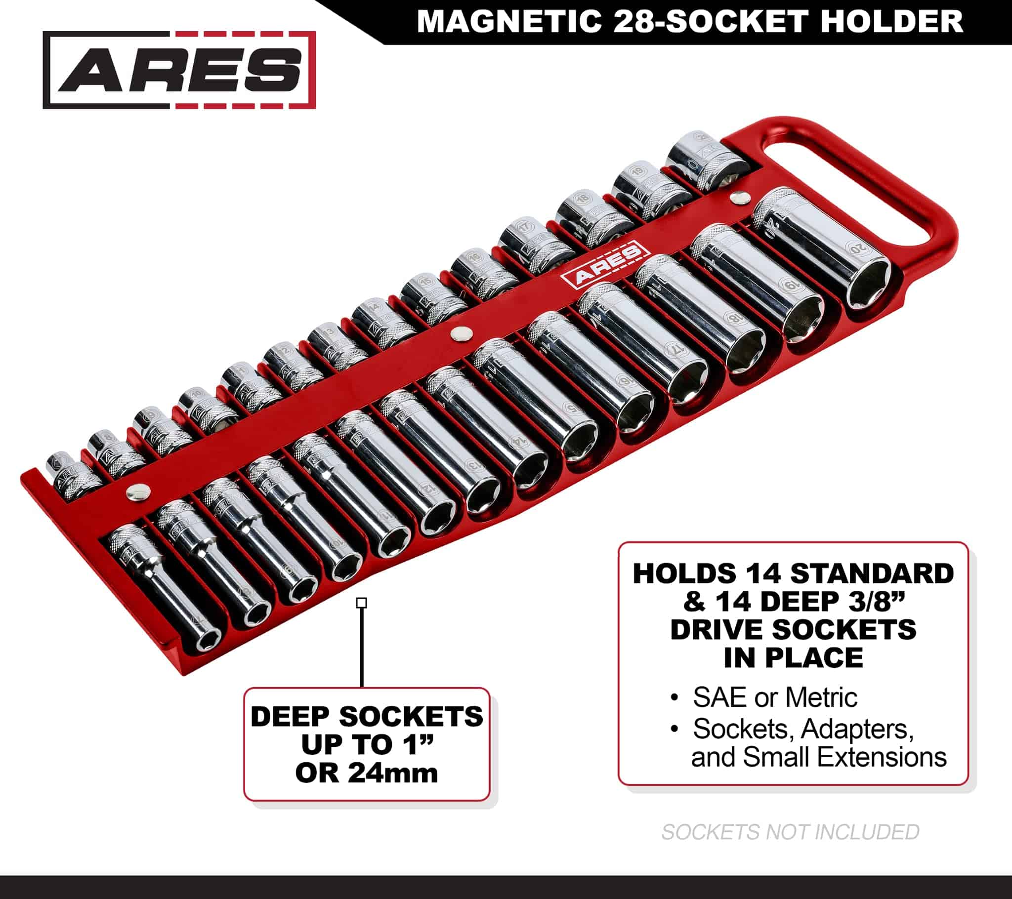 ARES 60155-Organizador magnético de 28 piezas de 3/8
