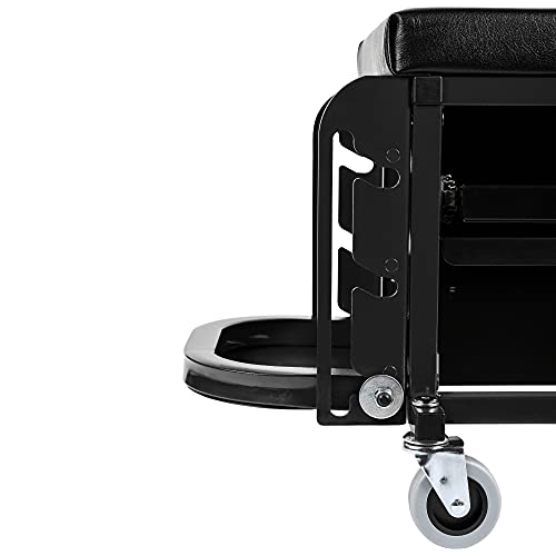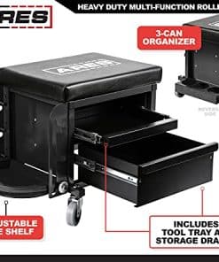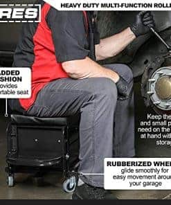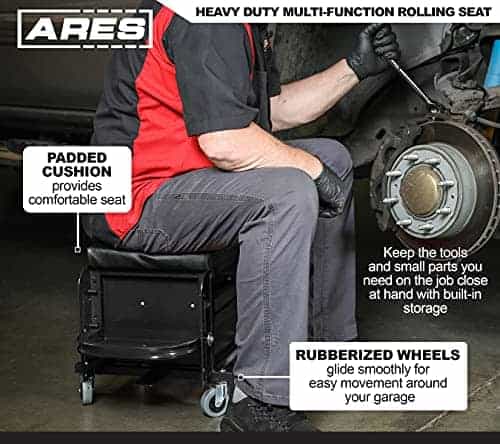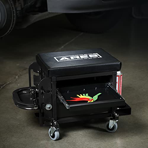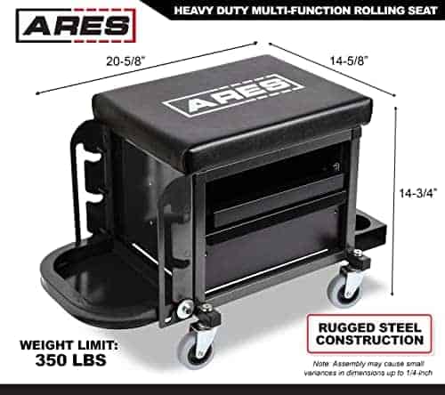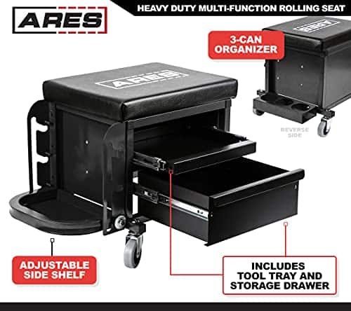El taburete de taller con ruedas proporciona un cajón y bandeja de almacenamiento de herramientas debajo del asiento, para que pueda mantener organizadas las herramientas que necesita a mano en todo momento. No tendrá que preocuparse por perder piezas pequeñas y podrá mantenerlas al alcance fácil. La construcción resistente de acero de este taburete de mecánico significa que resistirá horas interminables de uso. Su asiento acolchado proporcionará estabilidad y comodidad en el trabajo, por lo que podrá resistir esas horas interminables también. Las ruedas de alta calidad con goma aseguran un movimiento suave alrededor de su garaje. Los usuarios confían en ARES por ser herramientas de calidad. Está respaldado por nuestra Garantía de Rendimiento. Si tiene algún problema con su Taburete de Mecánico con Ruedas de ARES, simplemente comuníquese con el servicio al cliente para obtener ayuda con la solución de problemas, piezas, reemplazo o reembolso. Somos orgullosos de ser parte del Programa de Embajadores Empresariales de la ASPCA. Si tiene una mascota, se da cuenta de que son más que una mascota, son parte de la familia. Con su apoyo, nos enorgullece ayudar a esta gran organización.