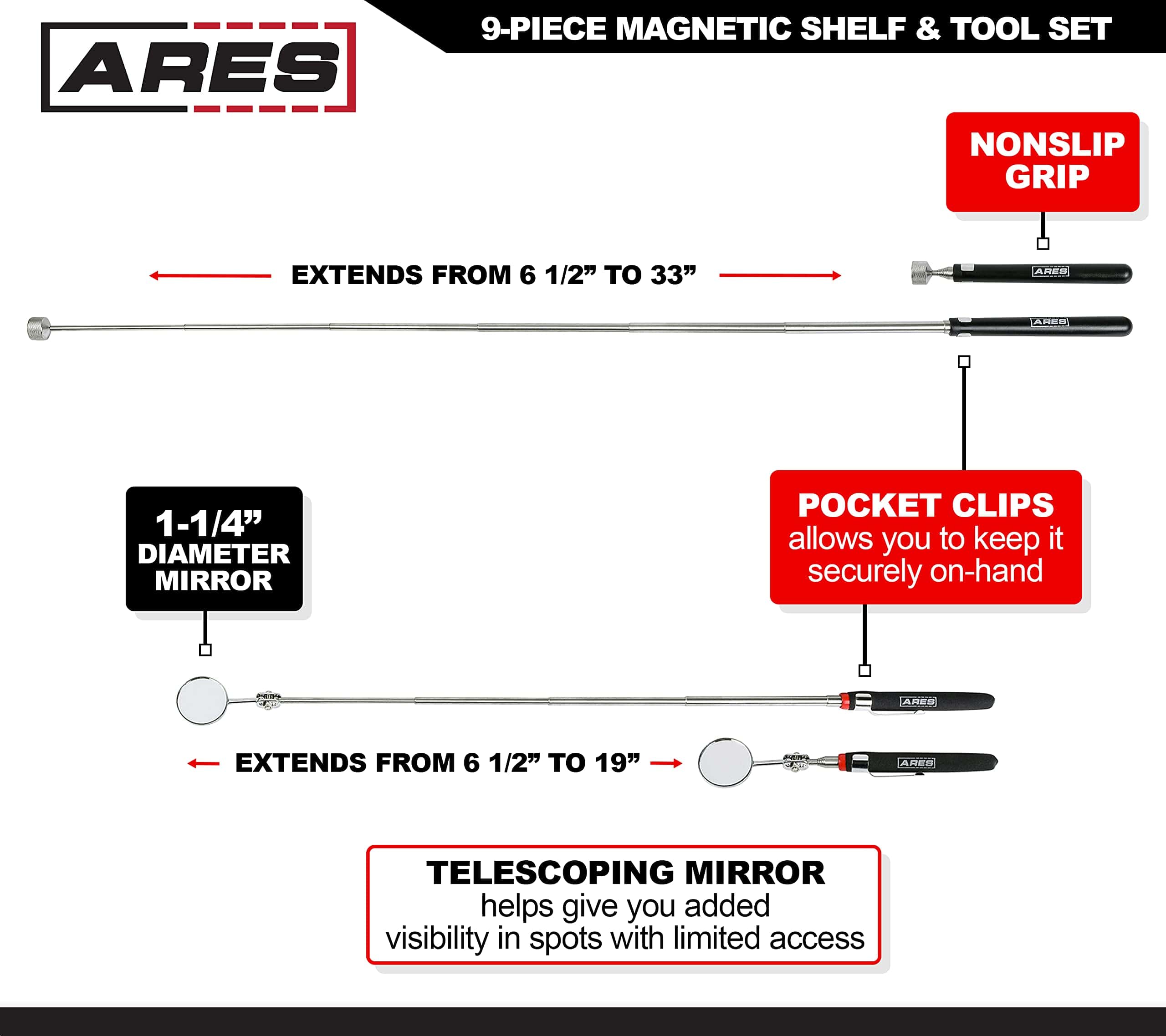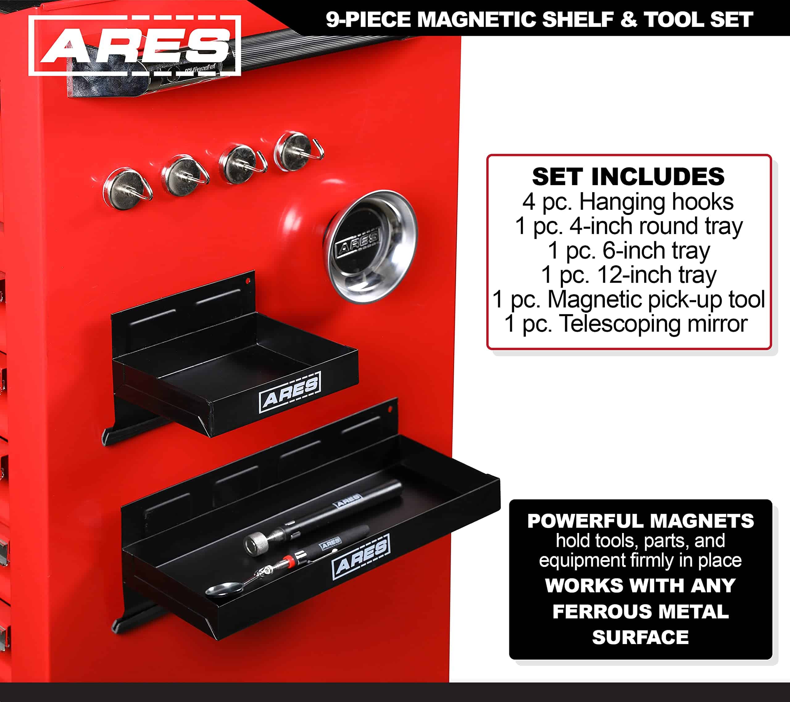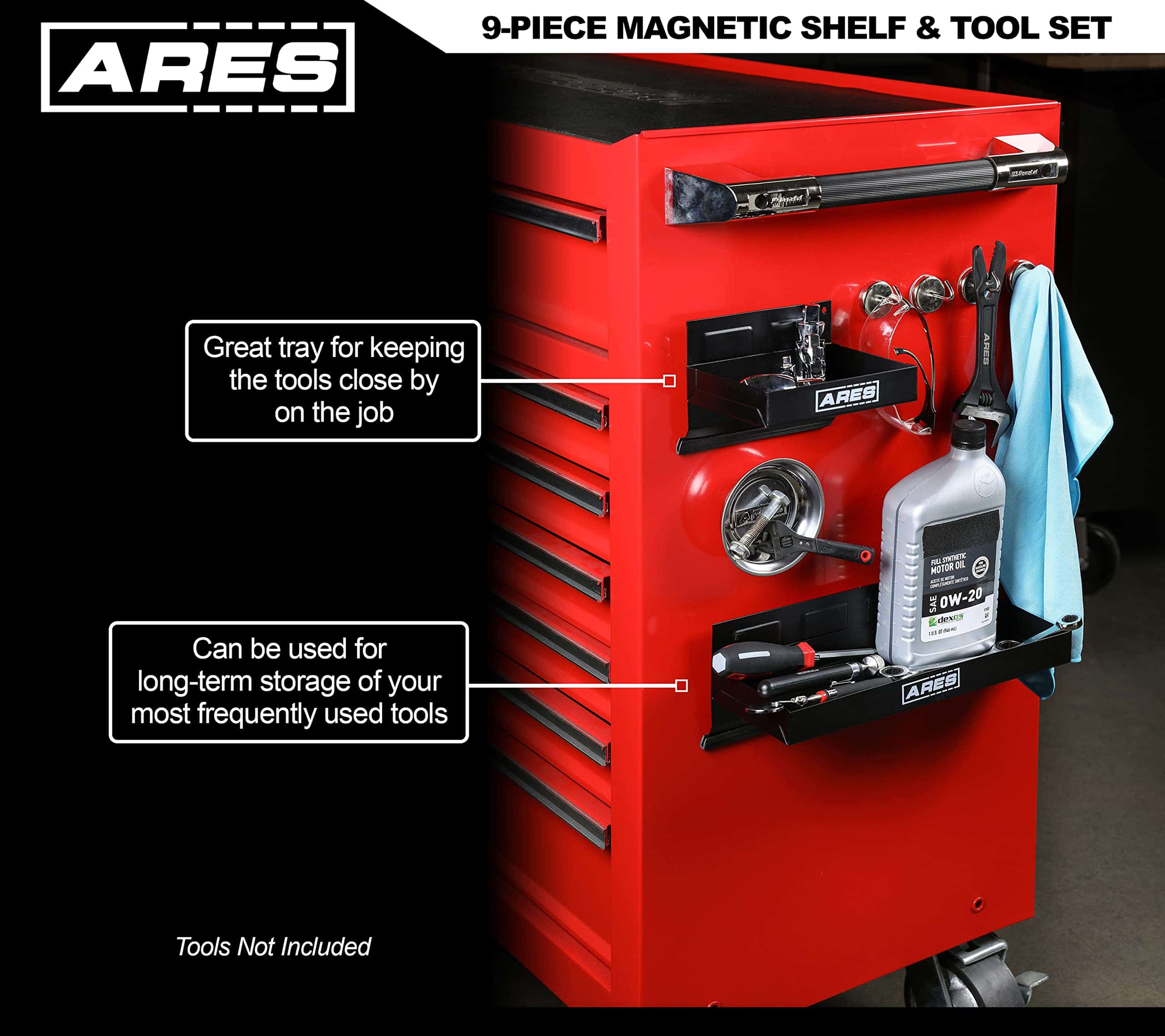 ARES 62037- Juego de 9 Estantes y Herramientas Magnéticas –