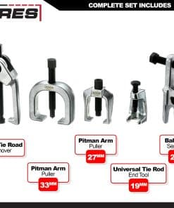 El Juego de Servicio del Extremo Delantero ARES proporciona un conjunto perfecto de cinco herramientas populares para el servicio de los extremos delanteros de la mayoría de los vehículos. Hechas de acero forjado de alta calidad tratado térmicamente, estas herramientas están hechas pensando en la longevidad y durabilidad, y con el estuche de almacenamiento de alta calidad incluido, puedes almacenarlas de forma segura en un solo lugar, para que nunca tengas que buscar la que necesitas en el trabajo.