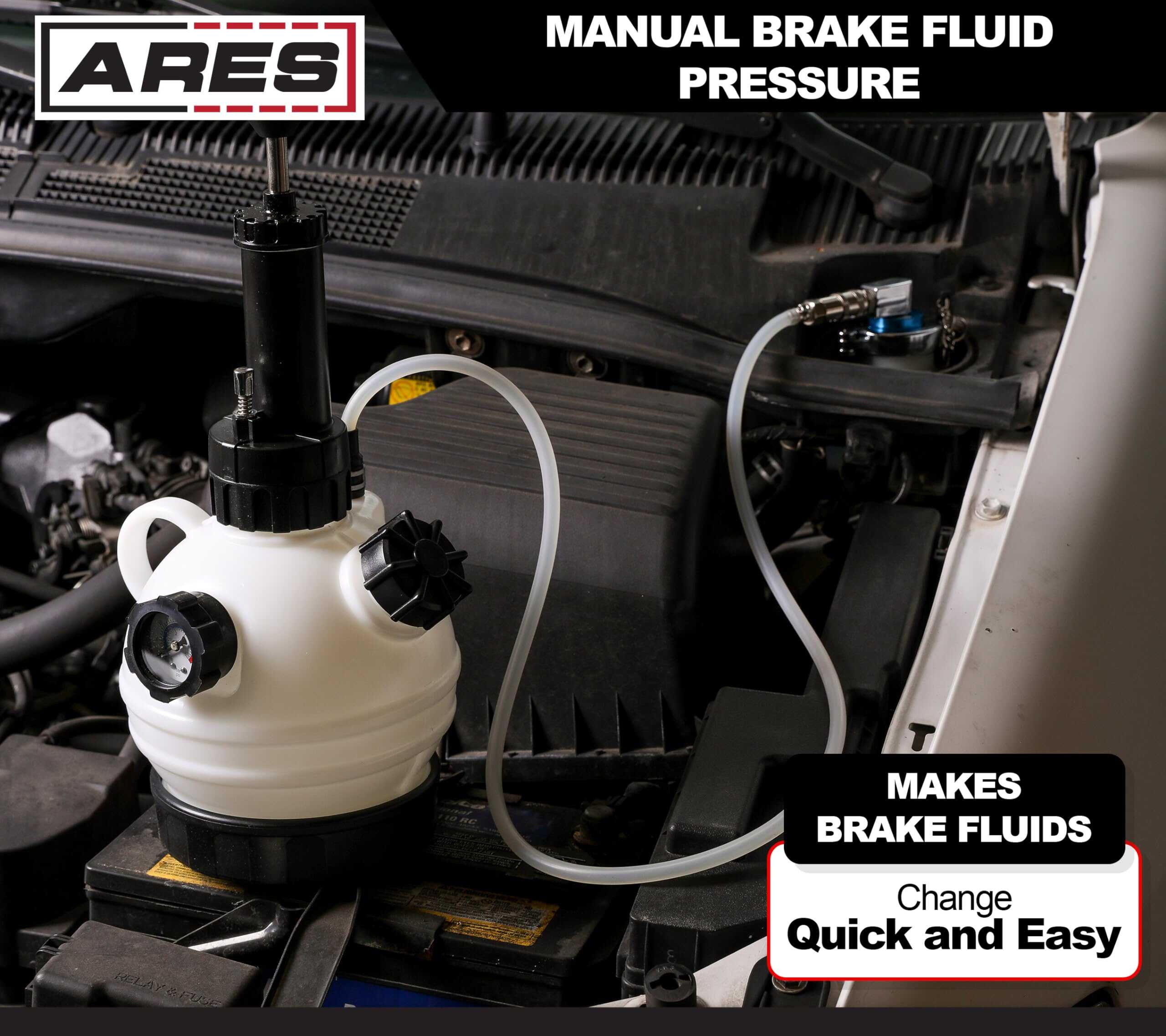 4. CONFIABLE | EFECTIVO | EFICIENTE: Los usuarios confían en ARES como herramientas de calidad. Estás respaldado por nuestra Garantía de Desempeño. Si tienes algún problema con tu Purgador de Presión de Líquido de Frenos Manual 2L de ARES, simplemente contacta al servicio al cliente para obtener ayuda de solución de problemas, piezas, reemplazo o reembolso.
