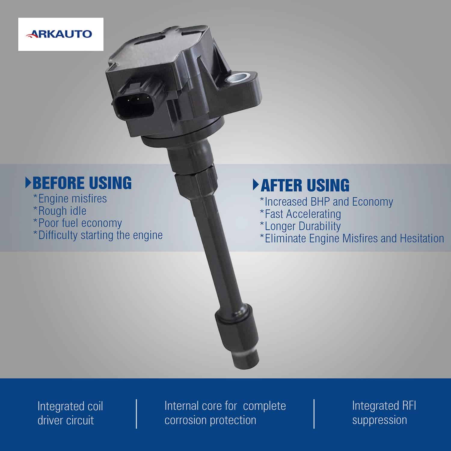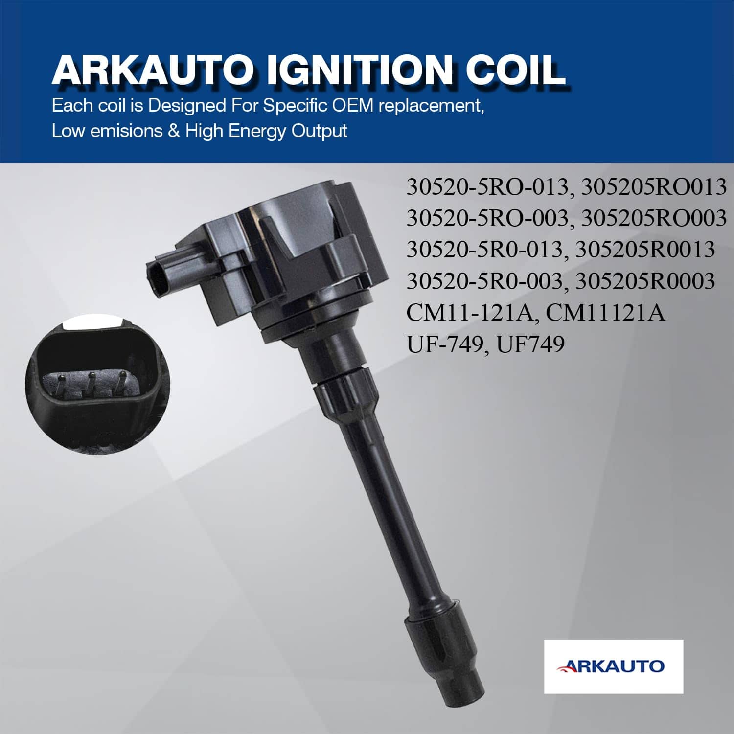ARKAUTO ignition coils are designed according to original OE types, which can replace your original faulty coils perfectly and function like the original ones. This coil is a replacement for OE: 30520-5RO-013, 305205RO013, 30520-5RO-003, 305205RO003, 30520-5R0-013, 305205R0013, 30520-5R0-003, 305205R0003, CM11-121A, CM11121A, UF-749, UF749. Buyers should compare the OE with your original car carefully before ordering to avoid buying a wrong part and causing unnecessary loss. Compatible with HONDA CIVIC HONDA FIT. Reduces common ignition coil issues such as; no/hard start, long crank time, misfires, lack of power, inconsistent transmission shifts, spark plug fouling, premature catalytic converter failure, poor fuel economy, check engine light illumination. 1 Year Limited Warranty – Please see if this part is compatible with your vehicle.