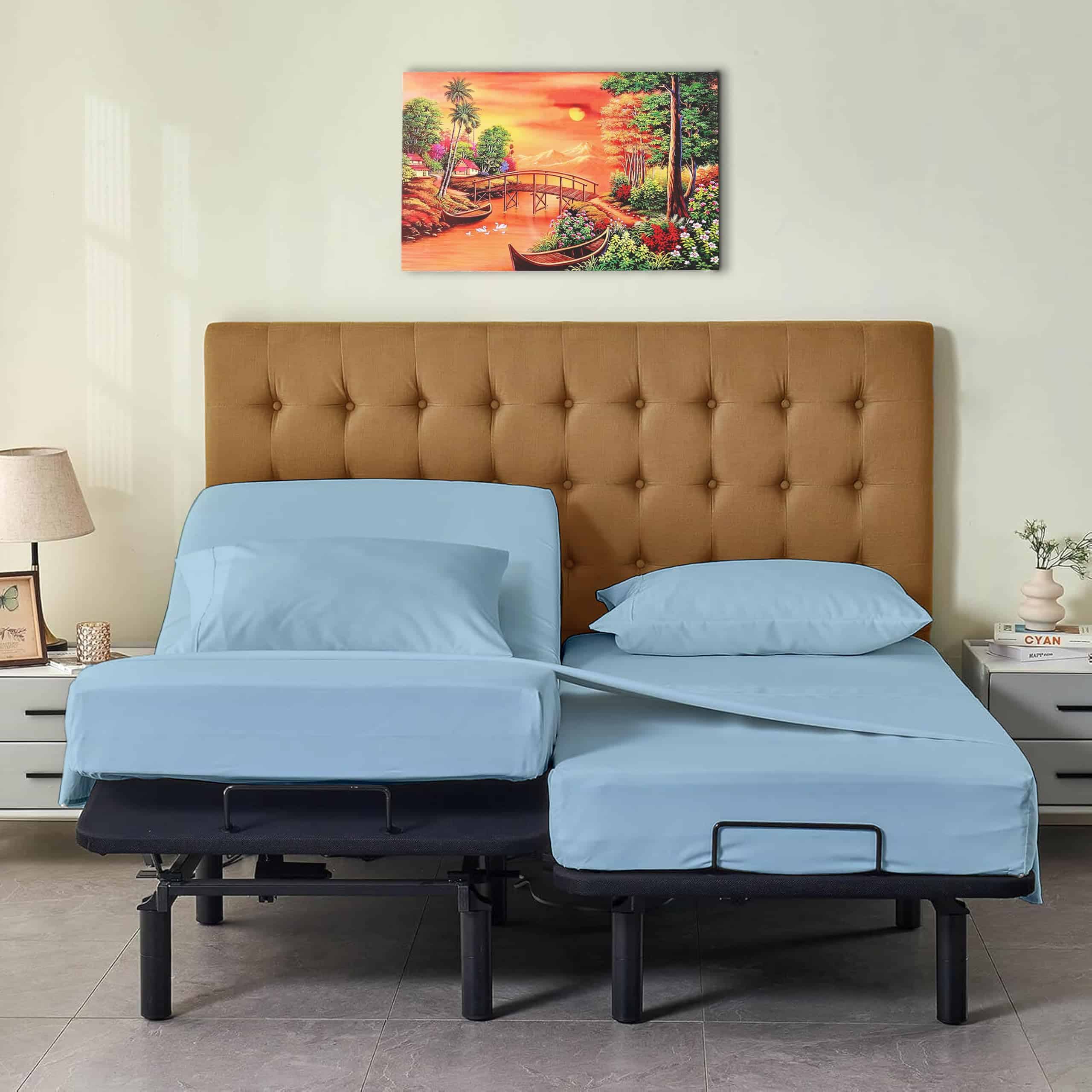 1. Incluye: 5 Piezas de Sábanas Split King 2 Sábanas Ajustables Twin XL (39″ x 80″) 1 Sábana Plana King (108″ x 102″), 2 Fundas de Almohada King (20″ x 40″). 2. Material: Hecho de algodón suave y transpirable al 100% para máxima comodidad y durabilidad. 3. Diseño de Bolsillo Profundo: La sábana ajustable se adapta a colchones de hasta 15 pulgadas de grosor, asegurando un ajuste perfecto. 4. Cuidado Fácil: Lavable a máquina y diseñado para resistir la decoloración, encogimiento y arrugas para un uso duradero. 5. Elegante y Versátil: Disponible en una variedad de colores y estampados para complementar cualquier decoración de dormitorio.