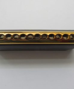 Esta es una armónica cromática de 12 agujeros y 48 tonos Material: láminas de bronce de fósforo, placa de lengüeta de latón con electrochapeado, peine de latón con electrochapeado de color dorado. Empaque: cada armónica en una bolsa de lona. Contenido: armónica + paño pequeño + bolsa de lona. Color: cubierta negra