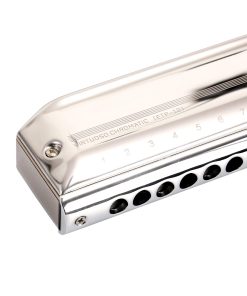 Calidad y funcionalidad excepcionales – El modelo cromático Super Performer de EASTTOP es el preeminente modelo cromático de la marca, con especificaciones líderes en la industria y fabricado con un peine de titanio lustroso altamente resistente a la corrosión que es más ligero que el acero. Este modelo cromático está afinado en solitario y cuenta con un rango de 3 octavas que comienza en do central. Las lengüetas de bronce fósforo están perfiladas para ofrecer una respuesta y durabilidad líderes en la industria, mientras que las válvulas especiales de ahorro de aire y el diseño del peine promueven una respuesta y proyección de sonido insuperables. El peine de titanio le da a este cromático un sonido preciso y puro, brillante pero versátil y diferente a cualquier otro modelo en el mercado. Un mecanismo de deslizamiento de acero inoxidable de respuesta rápida ha sido rediseñado para mantenerse suave y duradero después de meses de uso. Cada elemento del Super Performer se produce en la fábrica de EASTTOP, líder en la industria y certificada por ISO, para asegurar que sus tolerancias de lengüeta, afinación precisa y capacidad de reproducción sean consistentemente las mejores en el negocio.