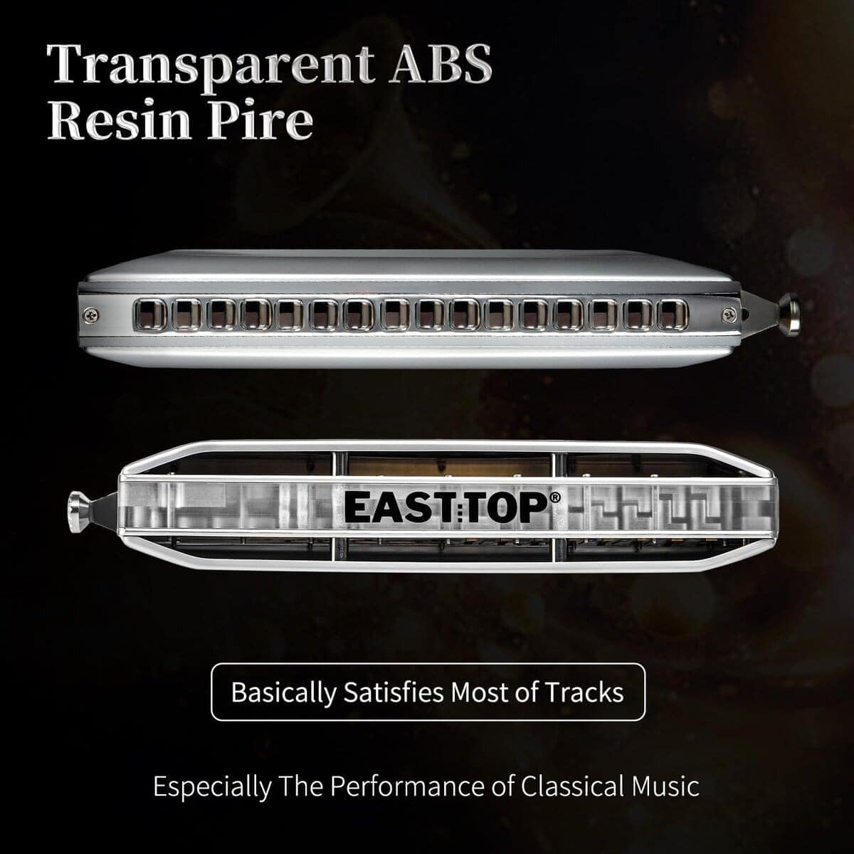 La armónica cromática Easttop Romance de 16 agujeros adoptará una estructura de armónica en línea y las áreas de doble, bajo, medio y agudo adoptarán un diseño de lengüeta de asiento segmentado, de modo que la pronunciación sea más uniforme y sensible, y la consistencia de la emisión sea mejor.