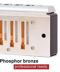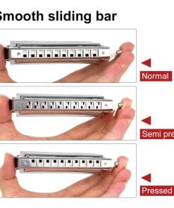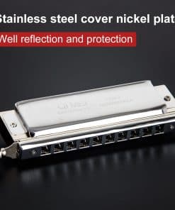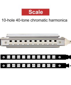 Especificaciones: Armonica Cromática (10 Agujeros 40 Tonos) / Material: Cañas de bronce de fósforo, Placa de cañas: latón, Barra deslizante lateral: latón, Boquilla: acero inoxidable, Placa de cubierta: acero inoxidable, Peine: ABS, Windsaver: plástico, Acabado: niquelado, Peso neto: 5.29 oz, Estilo musical: Jazz, Música Clásica / Paquete incluido: 1 x Armonica Cromática, 1 x Paño de limpieza, 1 x Instrucciones