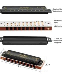 1. Armónica profesional para adultos – East top armónica diatónica profesional de 10 agujeros, adecuada para Blues, Folk, Rock, Country, Jazz, etc. Ideal para músicos profesionales de armónica y principiantes. Esta armónica de Blues profesional tiene un exquisito trabajo, hermosa apariencia, tono preciso y sensible. 2. Sonido rico, sensible, estanqueidad – Peine de plástico de precisión con lengüetas de bronce fosforado; placa de lengüeta de 1,2 mm de grosor es más fácil de obtener el tono más alto, sonido rico y timbre. La placa de lengüeta con galvanoplastia, el agujero, espacio de lengüeta es mejor después de la galvanoplastia. Al mismo tiempo, te sentirás cómodo al tocar, fácil de usar las habilidades, como el over-blowing y bending, dando al intérprete una nueva experiencia.