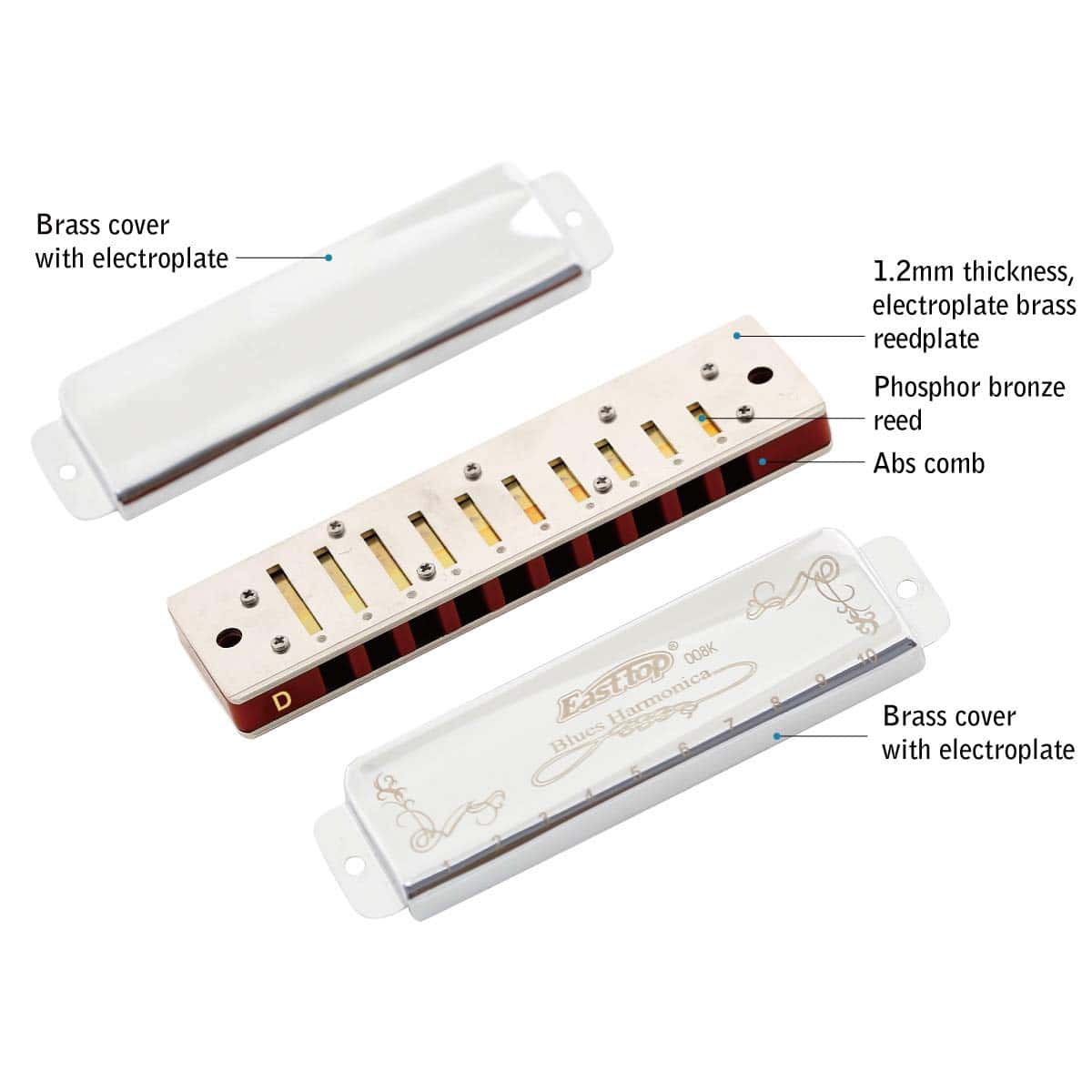 5. El paquete incluye 1x armónica (en do); 1x instructivo y 1x paño de limpieza. Somos el fabricante de armónicas de la marca East top. Respaldado con la Garantía de Devolución de Dinero Incondicional de 30 Días de East top. Puedes comprar nuestros productos con total confianza.