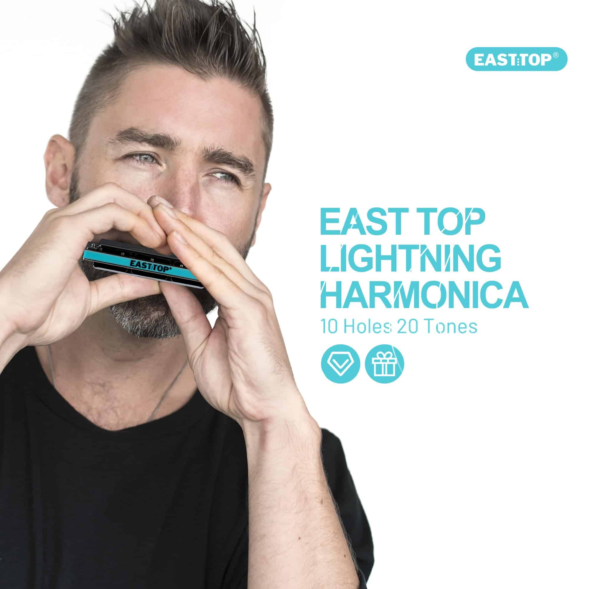 1. Armonica profesional para adultos-East top armónica diatónica profesional de 10 agujeros, adecuada para Blues, Folk, Rock, Country, Jazz, etc. Ideal para intérpretes y principiantes profesionales de armónica. Esta armónica de Blues profesional tiene un trabajo exquisito, hermosa apariencia, tono preciso y sensible.