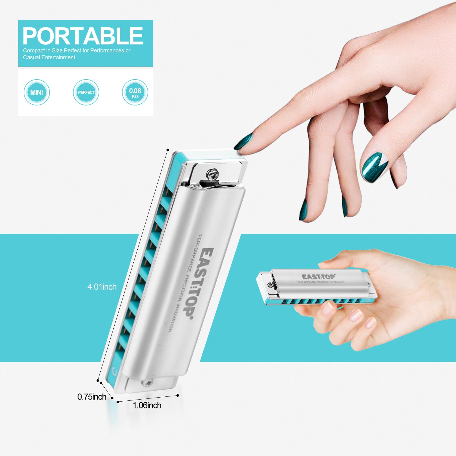 5. El paquete incluye 1x armónica (clave de E); 1x instrucciones y 1x paño de limpieza. Esta armónica es una versión mejorada del T008K, que utiliza una técnica de soldadura por puntos más compleja en el proceso de soldadura del badajo. Por lo tanto, esta armónica puede tocar canciones más hermosas. Somos el fabricante de armónicas de la marca East top.