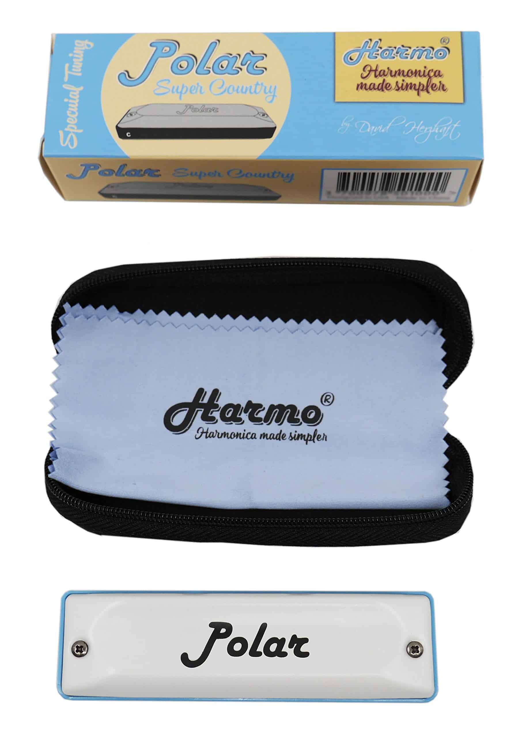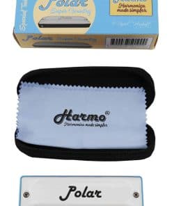 Esta armonica está sintonizada especialmente (no sintonizada estándar Richter) para facilitar a los principiantes e intermedios tocar melodías mayores en Cross Harp también conocido como ejecución en la 2ª posición. Estarás tocando una armonica C en la clave de sol mayor. (la clave que tocas está a una 5ª por encima de la clave de la armonica) Si conoces patrones principales básicos en la armonica afinada estándar, puedes usar fácilmente una armonica afinada y reutilizar la mayor parte de lo que ya sabes sin tener que aprender nuevos patrones y teoría compleja. En la tabla a continuación podemos ver un claro ejemplo de cómo la harmónica diatónica súper country afinada Harmo Polar te ayuda a tocar melodías mayores más fácilmente y puede ser útil para copiar esos rápidos licks de violín, mandolina o gaita irlandesa. Escala de sol mayor en 2 octavas C estándar 2 bend + 1 overbend C súper country 1 bend Diferencia entre la afinación estándar y la afinación super country La harmónica sintonizada super country Polar tiene el 5ª y 9ª agudos elevados permitiendo una reproducción super suave de rápidos licks mayores sin la necesidad de sobre-flexionar el agujero 5 o incluso flexionar el agujero 9! Harmonica diatónica Polar by Harmo Increíble, versátil, elegante. La harmónica Polar utiliza un proceso específico interno que la hace particularmente bien ajustada para una ejecución potente y precisa que te brinda una gran proyección, estanqueidad al aire y una buena configuración amigable para los overblows. Tono completo y fuerte con una respuesta rápida. Las cubiertas blancas mate de la Polar son una característica única que te hará destacar entre la multitud. Los bordes son muy suaves y adecuados para cualquier intérprete de harmónica. La harmónica diatónica Polar by Harmo súper country tuning viene en las 5 claves más útiles para música country, bluegrass y celta: Clave armónica Clave de afinación C G D A F C G D A E El paquete incluye: Un étui resistente con cremallera mantiene el polvo fuera y permite que la humedad se evapore. Se incluye un paño de limpieza Instrucciones básicas de juego