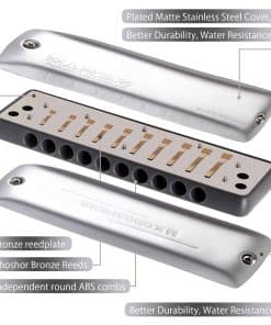 La armónica KONGSHENG Mars es la elección perfecta para principiantes, adultos y profesionales. Con una cubierta de aleación de aluminio y un peine de aleación de cobre, es respetuosa con el medio ambiente y no tóxica. Su diseño de apariencia futurista y su tamaño compacto la hacen cómoda de usar. Su diseño único de 10 tonos básicos permite una fácil adaptación para principiantes y profesionales, permitiendo una transición suave de los tonos. Además, esta armónica puede manejar una amplia variedad de estilos musicales como blues, folk, pop, jazz, country y rock. La compañía Kongsheng Instrument se compromete a ofrecer productos de alta calidad y un servicio excepcional para garantizar la satisfacción del cliente en todo momento.