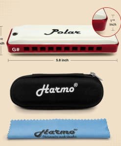 Armónica afinada en natural menor: Esta armónica está especialmente afinada (no estándar afinada a Richter) para que sea más fácil para principiantes e intermedios tocar canciones menores en blues menores, pentatónicas menores, y claves de modo dórico. Si conoces los patrones básicos mayores en la armónica afinada a estándar, puedes usar fácilmente una armónica afinada en natural menor y reutilizar la mayor parte de lo que ya sabes sin tener que aprender nuevos patrones y teoría compleja. En la tabla a continuación, podemos ver un claro ejemplo de cómo la armónica diatónica Harmo Polar Natural Minor te ayuda a obtener las escalas menores más útiles con 0 a 1 bend cuando necesitas cualquier cantidad de 2 a 8 en una armónica estándar. Escala pentatónica en Do menor en 2 octavas Do natural menor F dórico Do estándar 1 bend + 1 overbend 3 bends + 3 Overbends 5 bucles + 3 overbends Do min nat afinada 0 1 bend 1 bend Armónica Diatónica Polar de Harmo Asombrosa, Versátil, Elegante. La armónica Polar utiliza un proceso específico interno que la hace particularmente adecuada para blues, folk, country, rock y funk, brindándote una gran proyección, hermeticidad y una buena configuración amigable para overblow. Tono completo y fuerte con respuesta rápida. Las tapas blancas mate de Polar son una característica única que te hará destacar entre la multitud. Los bordes son muy suaves y adecuados para cualquier armonicista. La armónica diatónica Polar de Harmo viene en todas las 12 claves: C, C , D, D , E, F, F , G, G , A, Bb y B. El paquete incluye: un estuche con cremallera resistente que mantiene el polvo a raya y permite que la humedad se evapore. Se incluye un paño limpiador Instrucciones básicas de juego