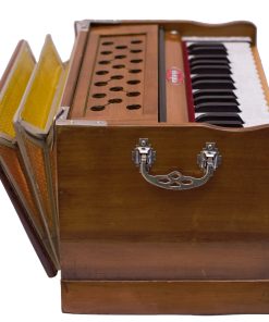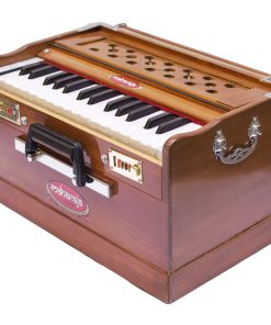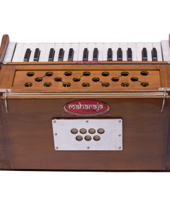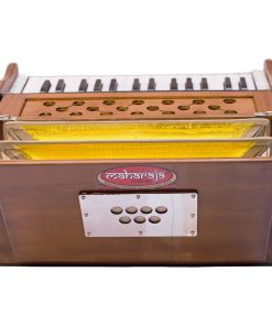 Armonio portátil Maharaja Musicals Modelo 2025-26 Small es un armonio hecho a mano ideal para acompañar kirtans o sesiones de yoga. Con 2 1/4 octavas Saptak, 3 fuelles plegables y un tamaño compacto de 17x10x10 pulgadas, es el compañero perfecto para la música devocional.