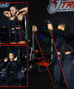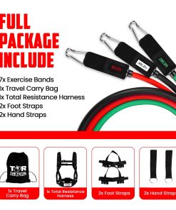 El Arnes Total Resistance es un arnes seguro que se ajusta a todas las tallas y añade resistencia a ejercicios comunes, así como a entrenamientos de alto rendimiento. El arnes ayuda a las personas a mantenerse en forma, perder peso, ganar músculo y para rehabilitación. El Arnes Total Resistance consta de dos tobilleras, que se pueden llevar dentro o fuera de cualquier zapato. También contiene un chaleco ligero, fuerte y resistente junto con 7 juegos de bandas de un solo hilo, 2 por juego.