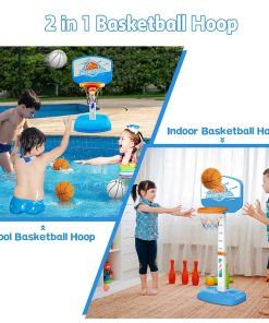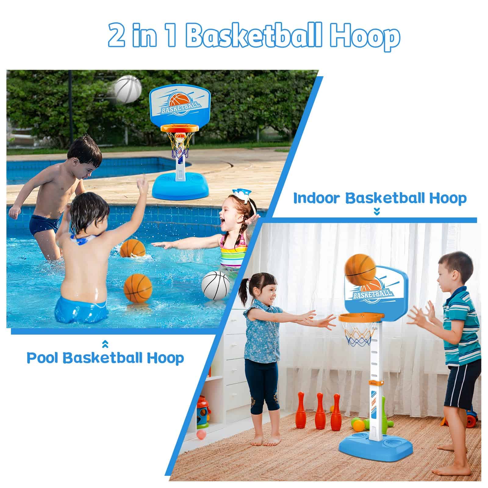 1. Aro de Baloncesto de Doble Uso – El aro de baloncesto TALGIC es un juguete deportivo versátil que ofrece dos formas de jugar. Puede cambiarse fácilmente entre aro de baloncesto para piscina y aro de baloncesto para interiores utilizando diferentes postes. El poste curvado se utiliza solo para el aro de baloncesto en la piscina, mientras que 2 postes rectos se utilizan para el aro de baloncesto ajustable para niños.