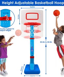 Aro de Baloncesto Portátil para Niños para Interiores y Exteriores: El aro de baloncesto se puede ajustar de 27.6 a 54.3 pulgadas según el crecimiento de niños y niñas.
