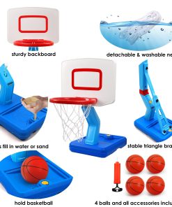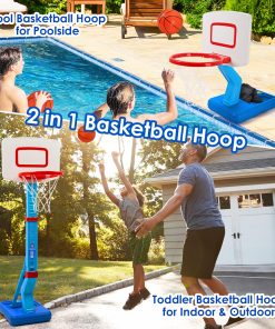 Aro de baloncesto para piscina al lado de la piscina: Los niños pueden jugar juegos de pelota de agua con este aro de baloncesto para que los niños disfruten de la fiesta de verano en la piscina.