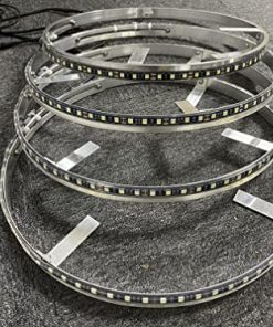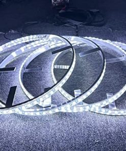 15.5» Fila única de color blanco puro, 300 LED SUPER BRILLANTES! Voltaje de operación: 12V DC Ilumina vibrante los pozos de las ruedas. El anillo de aluminio está equipado con soportes para una instalación más fácil. Controlado por interruptor, hardware de montaje e interruptor de palanca incluidos. Resistente al agua IP68. Evita eficazmente que la lluvia, la niebla, la humedad o el polvo entren en las tiras LED y las arruinen.