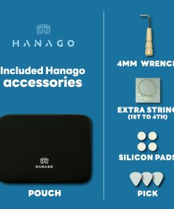 Hanago es el primer instrumento de un solo traste que hace disponibles 16 cuerdas pero 28 notas reprodulibles.
