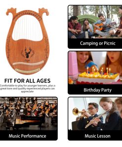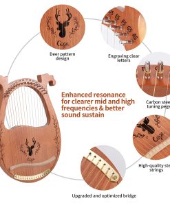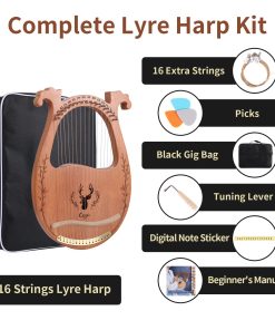 Arpa de Lira, 16 Cuerdas Arpa Acústica de Caoba con Cuerdas