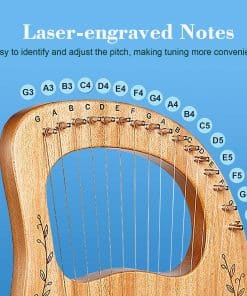 Descripción del producto: Nombre: Instrumentos de Arpa de Lira de 16 Cuerdas Material: Caoba Tamaño: 14.57 x 11.02 x 1.18 pulgadas Color: Color de madera, color café AVISO: 1. Al ajustar la cuerda, recuerda no ajustar demasiado de una vez. Cuando la cuerda esté ligeramente recta, debes empezar a usar la aplicación de afinación para iniciar el ajuste. La lira es diferente de instrumentos comúnmente utilizados como guitarras, violines, etc., la afinación de las cuerdas no puede ser demasiado grande y no se puede ajustar con tu experiencia en afinar otros instrumentos. 2. Cuando se cambia la cuerda nueva, el estado de las cuerdas es inestable. Por lo general, después de uno o dos minutos, el sonido es suelto. Este tipo de fenómeno de funcionamiento es común. Necesita ajustarse pacientemente 3-5 veces. La repetida ajuste durante una semana aproximadamente logrará un estado relativamente estable, pero debe ajustarse una vez antes de tocar. 3. En cuanto a la afinación de la lira, es normal que la cuerda se rompa la primera vez, porque las personas inexpertas generalmente no conocen la fuerza de ajuste por primera vez. Recomendamos que ajustes la afinación más baja primero, por ejemplo, de acuerdo con la afinación de A3-C5, y esperes unos días para que la cuerda se estabilice antes de ajustar a un tono más alto. Lista de empaque: 1 Arpa de Lira 3 Puas 1 llave de afinación 1 cuerda de repuesto 1 manual 1 bolsa de transporte