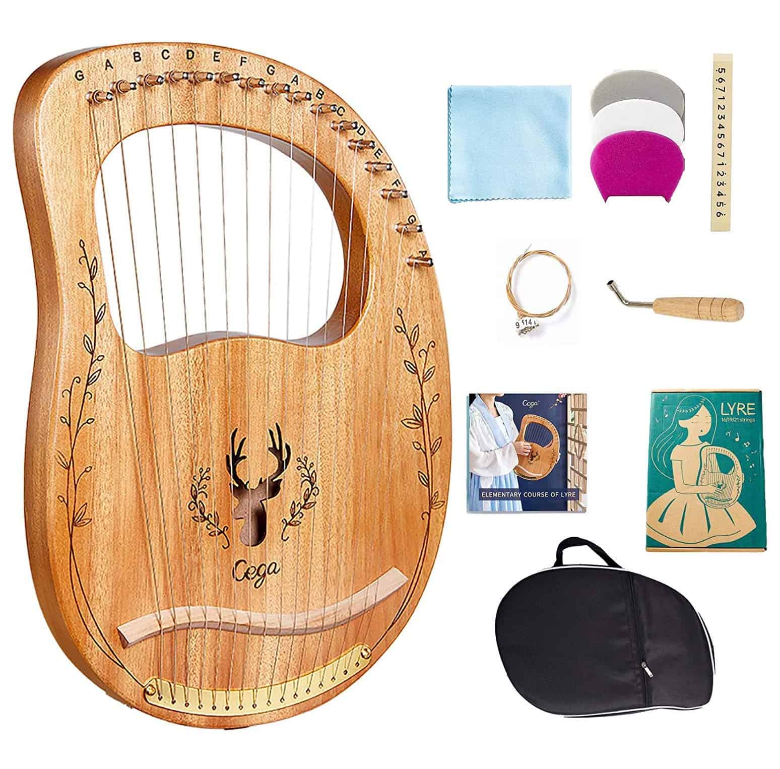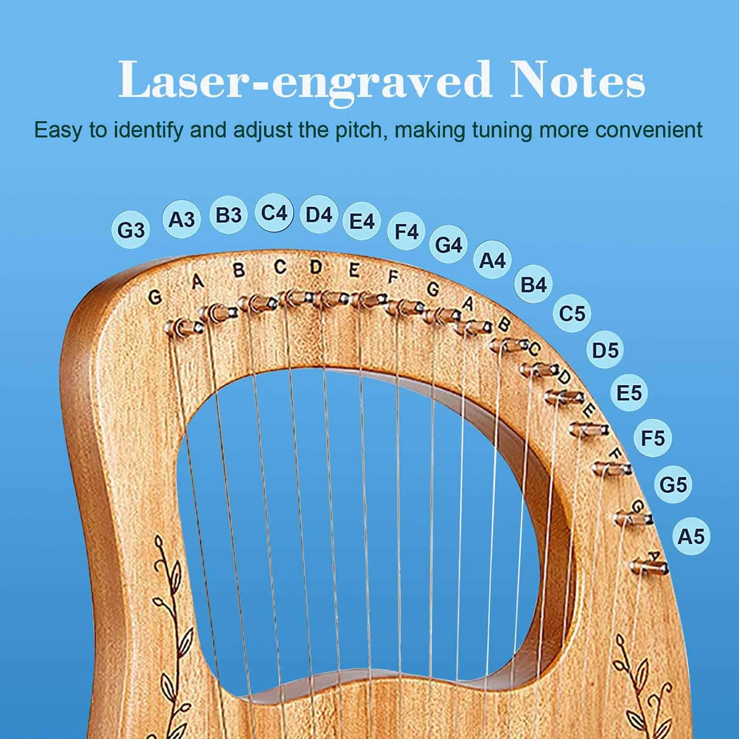 Arpa de Lira, 16 Cuerdas de Madera Maciza de Caoba con
