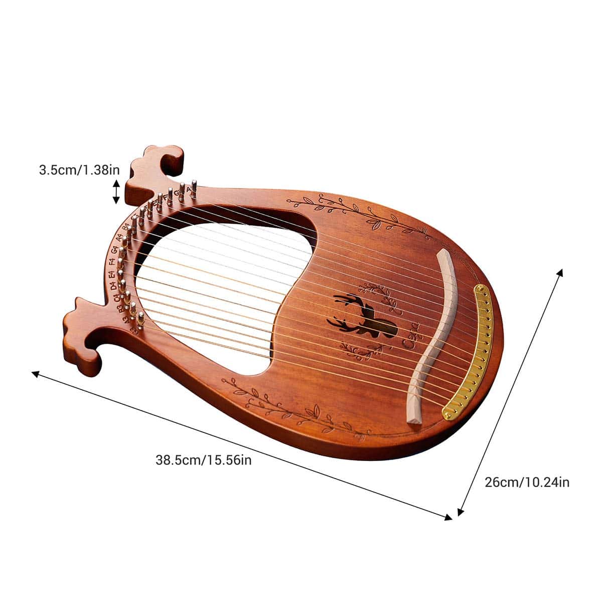 Arpa de Lira de 16 Cuerdas de Madera Maciza de Caoba con