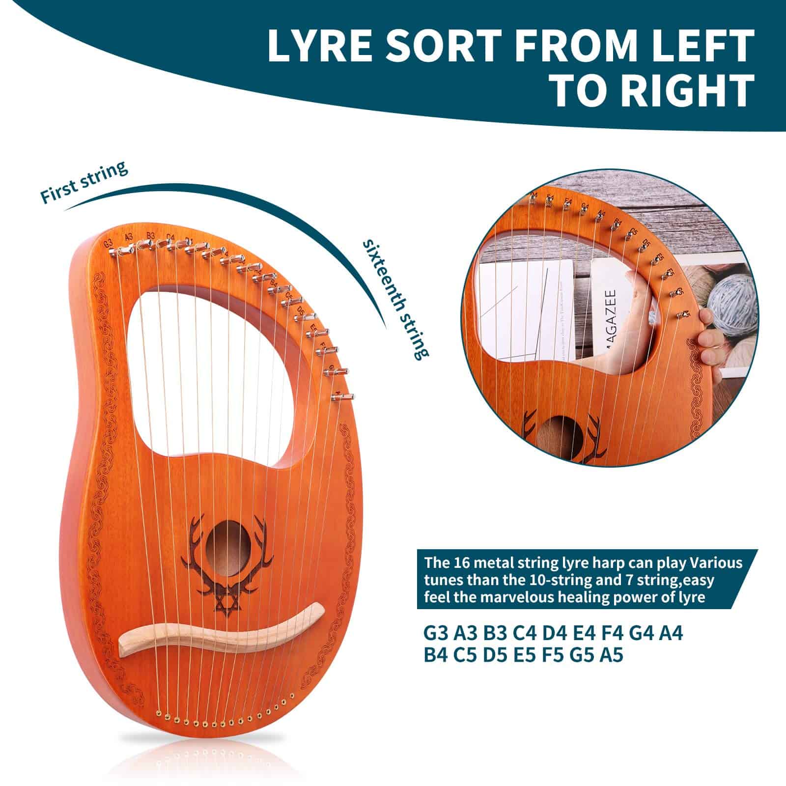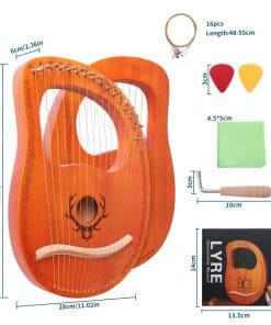 Arpa Lira de 16 Cuerdas de Caoba con Llave de Afinación,