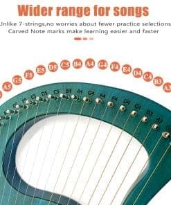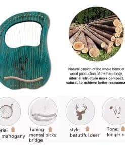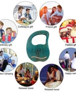 Esta arpa lira de 19 cuerdas es una pieza de calidad, tallada en madera de Caoba que le brinda una alta resistencia y densidad. Con cuerdas de acero duraderas que producen un tono vibrante y lleno, este instrumento musical es ideal como regalo para adultos, principiantes, amigos, profesionales y bandas. El diseño de detalles exquisitos, como el borde redondeado, la tabla de sonido que crea un efecto de silbido y el diseño de extremo en bucle para mayor estabilidad, hacen que esta arpa lira sea cómoda de sostener y mantener afinada. El kit incluye herramientas de afinación como una llave de afinación, un manual de instrucciones, un paño de limpieza y púas. Con una amplia aplicación y una bolsa de transporte incluida, esta arpa lira de 19 cuerdas es perfecta para llevarla contigo de viaje o a fiestas para disfrutar de su cálido sonido agradable.