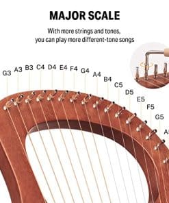 El arpa lira Donner de 16 cuerdas está fabricada con una caja de resonancia sólida de caoba y teclas de acero para garantizar un sonido claro y suave. El sillín de cobre puede transmitir la vibración, evitar que la cuerda se fuerce en la madera y mantener el arpa lira afinada. Cada cuerda del arpa lira está envuelta alrededor del correspondiente columna de sonido de metal para facilitar su ajuste con la llave de afinación y el manual. Con un diseño elegante de alta calidad de caoba, es una excelente opción como regalo para principiantes y niños. El paquete incluye el arpa lira Donner DLH-003, juego de cuerdas de repuesto, llave de afinación, bolsa de transporte, libro de instrucciones, paño de pulido, 2 púas y una garantía incondicional de devolución de dinero de 30 días respaldada por nuestro increíble equipo de soporte al cliente listo para ayudar.
