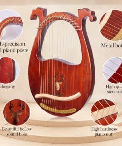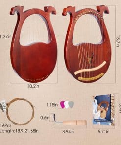 Arpa Lira VixxNoxx, Arpa de 16 Cuerdas de Caoba, Kit de