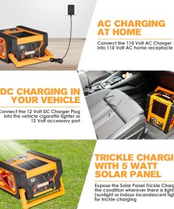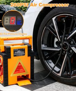 Además de su función de arrancador, esta estación de energía portable cuenta con una capacidad de 22000mAh que puede cargar rápidamente sus dispositivos electrónicos como teléfonos móviles, tabletas, portátiles, proyectores, y más. También incluye un compresor de aire de 260 PSI para inflar neumáticos, con 3 boquillas diferentes para adaptarse a una variedad de aplicaciones.