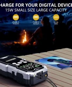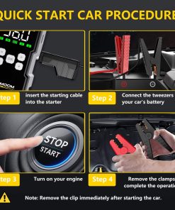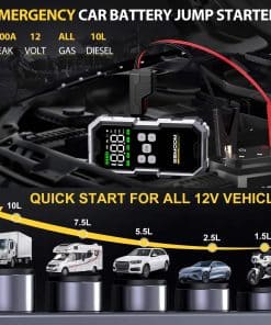 El arrancador de batería 7000A de BSMOOM con compresor de aire es una solución potente y versátil para situaciones de arranque de emergencia y necesidades de inflado de neumáticos. Con una capacidad de hasta 7000A de corriente máxima, es capaz de arrancar motores de gasolina y diésel de hasta 10.0L, lo que lo hace ideal para una amplia variedad de vehículos, desde coches y camiones hasta motocicletas y barcos. El diseño innovador y las múltiples características de seguridad hacen que sea una opción confiable para cualquier entorno, incluidas temperaturas extremas, con protecciones inteligentes como detección automática de conexión y alarmas de conexión errónea para garantizar un uso seguro y libre de chispas. Además de sus capacidades de arranque y inflado de neumáticos, también funciona como un banco de energía portátil con un puerto de salida USB para cargar dispositivos electrónicos, y sus luces LED super brillantes con modos de Iluminación, Flash y SOS proporcionan una excelente visibilidad en situaciones de poca luz. El paquete incluye todo lo necesario para su uso, desde las pinzas de batería de servicio pesado hasta el cable de carga USB y el estuche de almacenamiento, lo que lo convierte en una solución completa y conveniente para cualquier conductor.