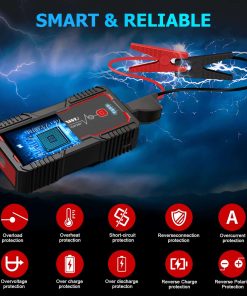 3. PROTECCIÓN DE SEGURIDAD Y FIABILIDAD El paquete de batería de arranque portátil está equipado con chips de protección inteligente contra cortocircuitos, no tendrá que preocuparse por conexiones incorrectas o chispas. Proporciona protección contra sobre corriente, sobrecarga, sobre voltaje, sobre carga, sobre temperatura, etc. Fácil de usar y seguro para que cualquiera lo use; El clip está equipado con cobre de alta calidad, que tiene una mejor conductividad.
