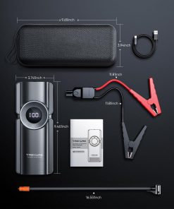 En resumen, el arrancador de batería de coche portátil TREKURE con compresor de aire es la solución perfecta para todas tus necesidades en la carretera. Con un diseño inteligente y funciones múltiples, este arrancador te ofrece un apoyo inigualable en cualquier situación de emergencia.
