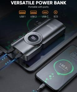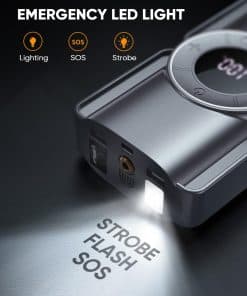 Además de ser un potente arrancador de batería, este dispositivo también cuenta con un compresor de aire inteligente con pantalla LCD. Con una capacidad de inflado de 35L/Min a 150 PSI, este compresor puede inflar rápidamente neumáticos, balones y otros objetos inflables. La pantalla LCD muestra datos en tiempo real y permite ajustes precisos, garantizando un inflado adecuado en todo momento.
