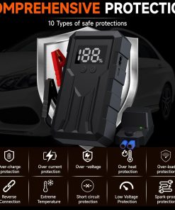 3. Protección Múltiple: El arrancador utiliza un diseño de Batería Integrada y Pinzas Inteligentes, que están completamente aislados y son lo suficientemente seguras. 10 tipos de protección incluyen a prueba de chispas, protección de polaridad inversa para protegerlo de problemas de fallas como cortocircuitos o chispas.
