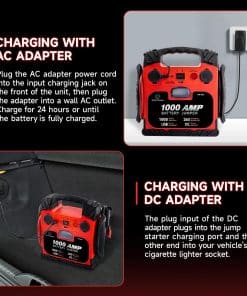 4. LED brillante y fácil de usar—Cuando tienes un corte de energía de emergencia o acampas al aire libre, el arrancador de batería puede proporcionar una iluminación LED brillante y duradera, para que no tengas miedo a la oscuridad. También viene con cargadores de CA y CC para una carga fácil desde tomas de pared o tomas de encendedor de cigarrillos en el vehículo.