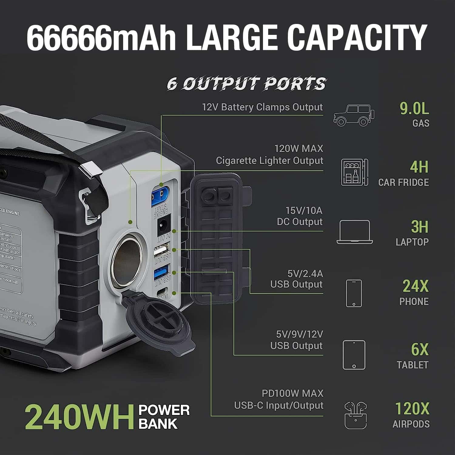 Arrancador de batería YESPER Car Jump Starter, 66666mAh 12V