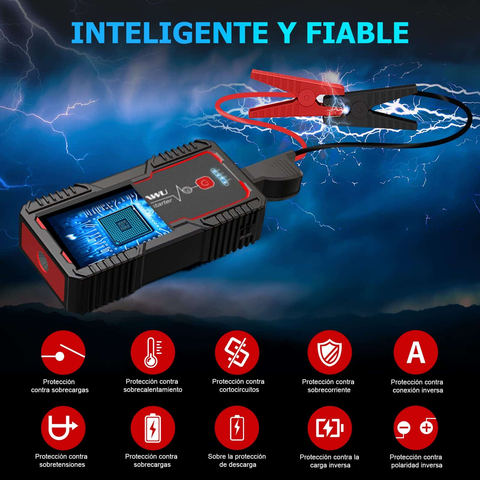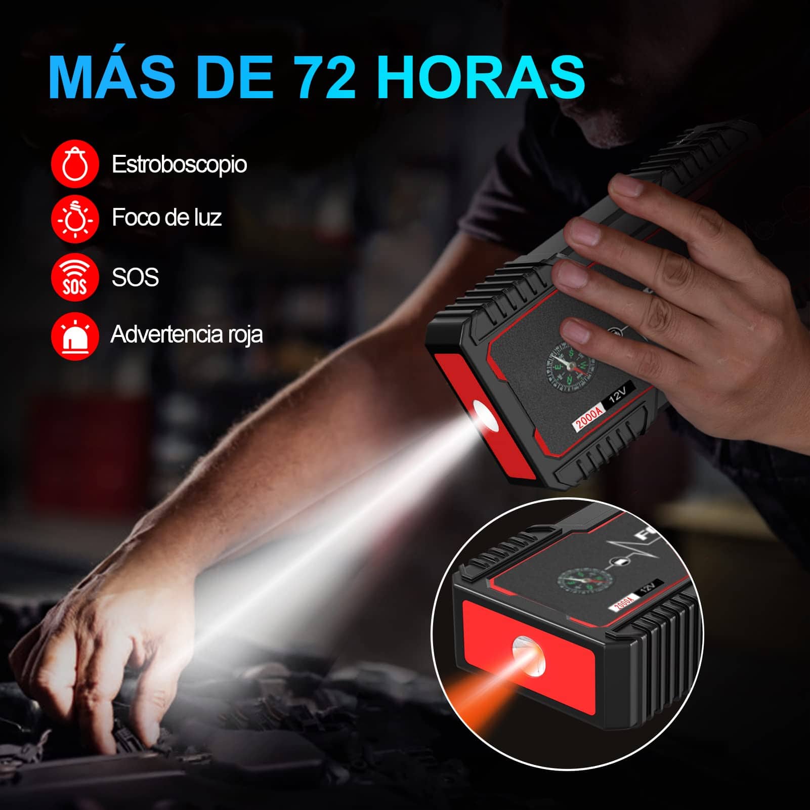 El arrancador de batería portátil tiene dos puertos USB, Compatible con casi todos los dispositivos de carga USB como teléfonos móviles, tabletas; también tiene salida de 12V que puede suministrar energía para productos de 12V/10A en el vehículo: inflador de neumáticos, aspiradora, colchón inflable, etc. La batería de arranque está equipada con 4 modos de luz LED (iluminación/SOS/estroboscópica/advertencia), lo que brinda más comodidad en el uso nocturno. Esta linterna multiusos es ideal para acampar, exteriores, emergencias, viajes, etc. El paquete de batería de arranque portátil está equipado con chips de protección inteligentes para protegerse contra cortocircuitos, no tendrá que preocuparse por conexiones incorrectas o chispas. Proporciona protección contra sobre corriente, protección contra sobrecarga, protección contra sobre voltaje, protección contra sobrecarga, protección contra sobrecalentamiento, etc. Fácil de usar y seguro para que cualquiera lo use; El clip está equipado con cobre de alta calidad, que tiene una mejor conductividad. Resistente al agua, a prueba de polvo y a prueba de golpes, se puede utilizar bajo la lluvia, 100% fiable para actividades al aire libre y mal tiempo. Obtendrá: arrancador de batería, cable de refuerzo inteligente, adaptador de enchufe para encendedor de cigarrillos, cable Type-C, manual de usuario. Prometemos garantía de 12 meses. Cualquier duda, no dude en contactarnos en cualquier momento.