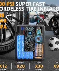 1. Ultra potente compresor de aire 200 PSI y 4X más rápido: Construido en cilindro de aluminio, motor de alta velocidad de 17500 rpm para una experiencia de inflado súper rápido , haga que su inflado de neumáticos sea libre de preocupaciones, el inflador de neumáticos ofrece un flujo de aire de 42L/minuto de la mayoría de infladores 200 PSI, 4 veces más rápido que otros. Solo toma 4 minutos para inflar completamente un neumático de coche 205/55 R16 (0-36PSI), 0.5 min para rellenar de 29-36PSI probado en laboratorios especializados.