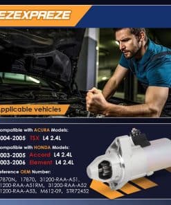 Arrancador Ezexpreze 17870N compatible con Honda Accord 2003-2005 L4 2.4L, Element 2003-2006 L4 2.4L, Acura TSX 2004-2005 L4 2.4L. Este arrancador está diseñado específicamente para los modelos mencionados, reemplazando los números de pieza 31200-RAA-A51, 31200-RAA-A52, 31200-RAA-A53, entre otros. Con una potencia de 1.6kw y 9 dientes, este arrancador garantiza un arranque eficiente y seguro para su vehículo. El paquete incluye un motor de arranque y guantes de mecánico, todo empaquetado en una caja de cartón de colores con almohadilla de papel para un transporte seguro. Cada arrancador Ezexpreze ha pasado pruebas de DV al 100% y está certificado con una garantía sin complicaciones de 1 año. Además, ofrecemos soporte al cliente y soporte en línea para cualquier consulta que pueda tener.