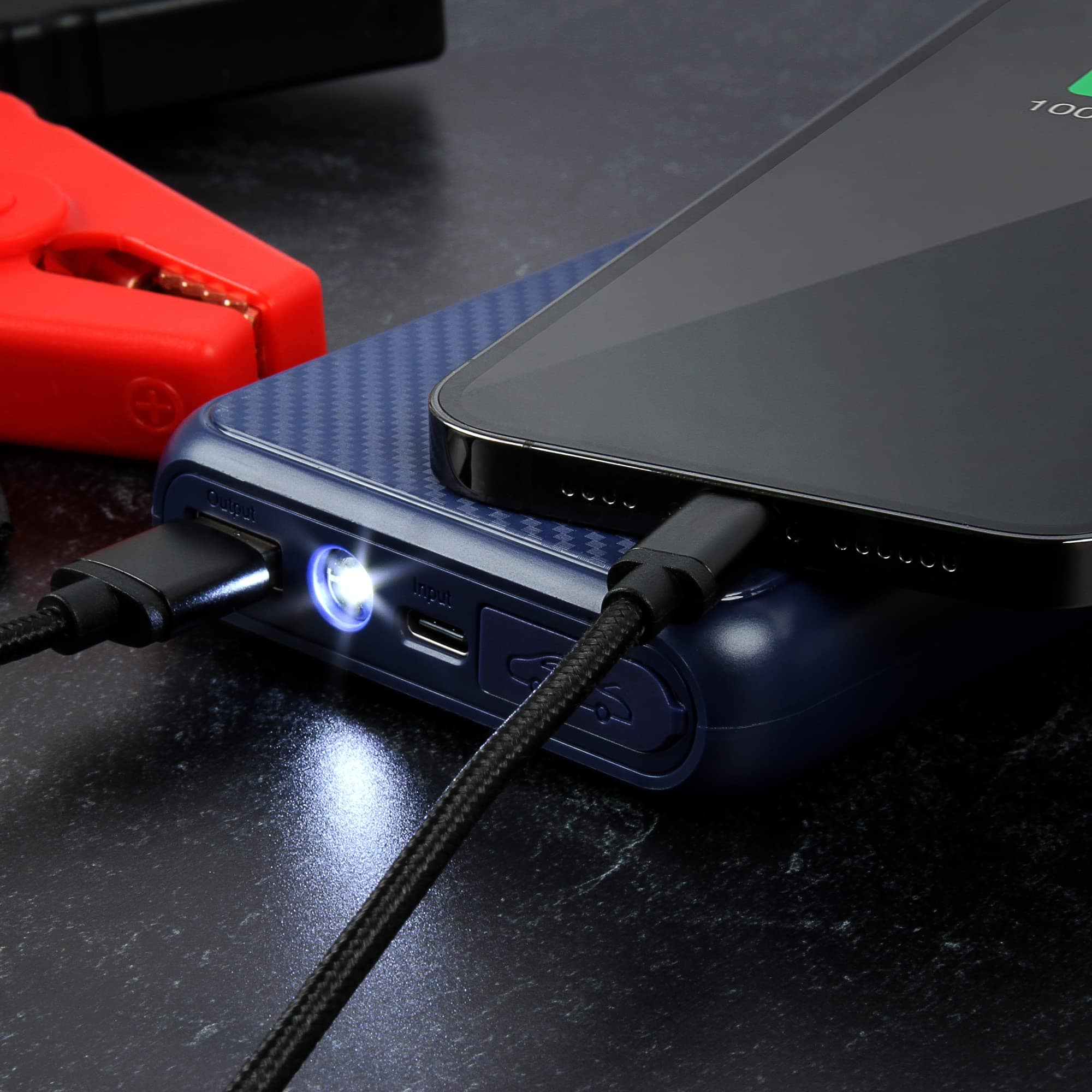 ¡Pasa de cero a héroe con el pequeño pero poderoso AutoBoost! Este arrancador portátil, banco de energía y linterna está equipado para arrancar una batería de vehículos de 5.0L y puede cargar prácticamente cualquier dispositivo habilitado para USB. Olvídate de esperar a la AAA o pedir ayuda a un extraño: ya sea que estés en la carretera o atascado, ¡AutoBoost te tendrá cubierto!
