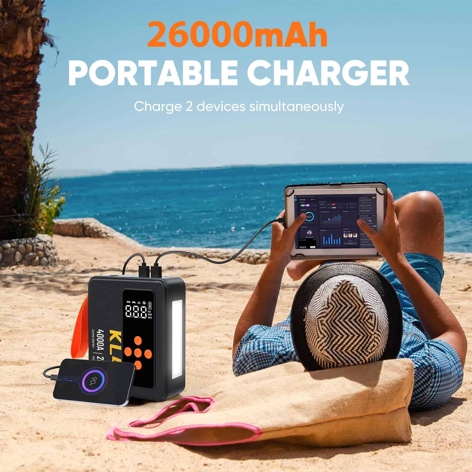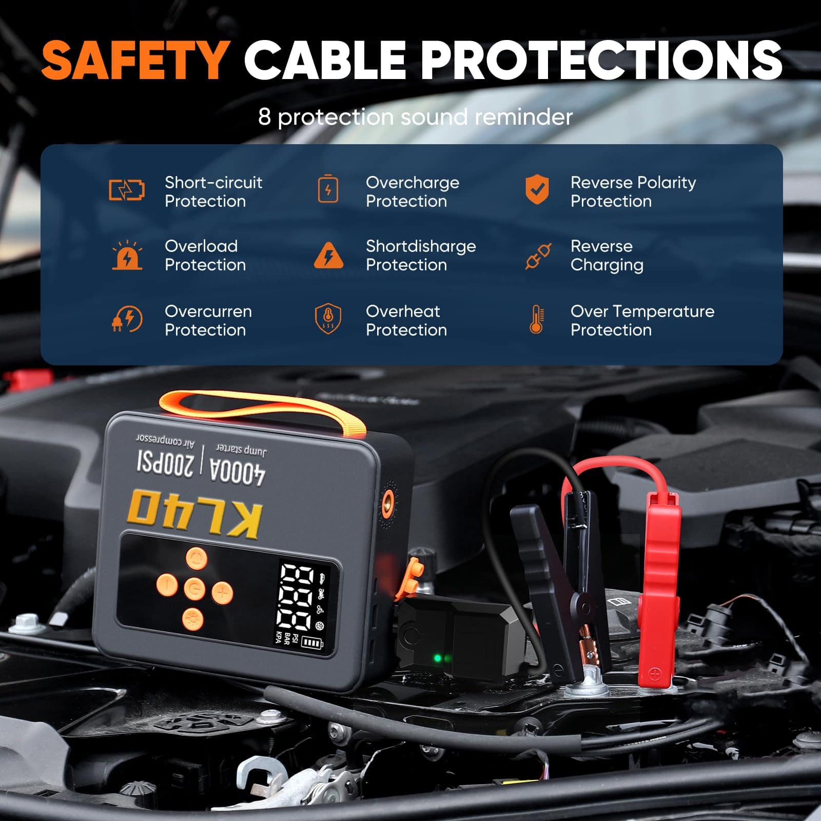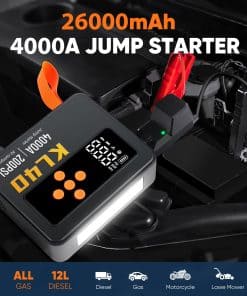 Este Arrancador Pskikkp KL40 y Inflador de Neumáticos combina potencia y portabilidad en un solo dispositivo. Equipado con una función de inflado de neumáticos de 200 PSI y 4X más rápida, le permite inflar los neumáticos de su vehículo de forma rápida y sencilla. Además, su potente rendimiento de arranque de 26000mAh lo convierte en una solución integral para emergencias en la carretera. Con múltiples modos de operación y protecciones integradas, este arrancador de batería es seguro y fácil de usar en cualquier situación. Además, su capacidad de doble uso como fuente de alimentación portátil lo convierte en un dispositivo versátil para el automóvil y más allá.