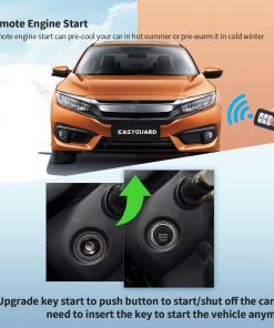 Este es un arrancador remoto EASYGUARD SEMI PLUG & PLAY PKE para Honda CRV/Civic 09-11 II FIT 09-13 II City 09-14 II Acura MDX 10-11 que no funciona con otros vehículos no especificados aquí. SEMI Plug & play con conector OBD2 y arnés en T, sin daños en el circuito original del automóvil, compatible con CAN BUS y firmware precargado, solo necesita conectar algunos cables. Actualice su llave de encendido a un botón de encendido con PKE-entrada sin llave, arranque y parada del motor remotamente. Aunque el dispositivo es plug & play, le recomendamos que lo instale un instalador de alarmas capacitado o un instalador de alarmas profesional si no tiene experiencia en instalación de alarmas. El módulo de bypass está incluido en el kit.