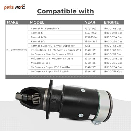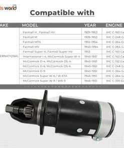 Reemplaza estos Números OEM: LESTER 4132, INTERNATIONAL HARVESTER IHC 104219A2 997870R91 104219A2R, BOSCH SR570X, CASE 63608D, DELCO REMY 1107427 1107448 10461696, PIC 140-013, AC DELCO 323801, WAI 2-2286-DR 4132N, ARROWHEAD SDR0088, J & N 410-12274, REMY REMAN SR111776, PARIS RHONE D10B33. Ajuste en los siguientes modelos: Tractores Agrícolas Internacionales – Farmall H C-163 Gas (1939-1953), Farmall HV IHC C-163 Gas (1939-1953), Farmall M C-248 Gas (1939-1952), Farmall MTA IHC C-264 Gas (1952-1954), Farmall MV IHC C-264 Gas (1940-1952), y más.