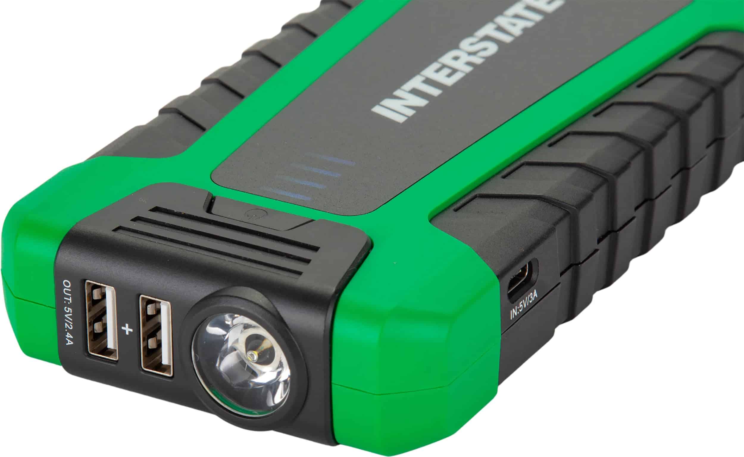¡Las baterías descargadas ya no son un problema con el Arrancador y Cargador de Baterías Interstate 12V 700A! Este dispositivo portátil y compacto puede arrancar rápidamente y de forma segura un auto o camioneta con una batería de 12 voltios, incluso motores diesel de gran tamaño. Su linterna LED incorporada facilita el trabajo en la oscuridad, ya sea para arrancar un auto por la noche o señalar a otros en caso de emergencia. Además de su función de arranque, el Charge & Go también puede cargar tus dispositivos electrónicos como teléfonos, tablets, auriculares Bluetooth y más. Con una batería de alta calidad de 8,000 mAh y una corriente máxima de 700 amperios, es una solución confiable y duradera para tus necesidades de energía sobre la marcha. Incluye todo lo que necesitas para estar preparado en situaciones de emergencia, desde cables de pinza inteligente hasta una variedad de cables de carga y un estuche compacto para transportarlo fácilmente. ¡No te quedes sin energía, confía en Interstate Batteries para mantenerte en movimiento!